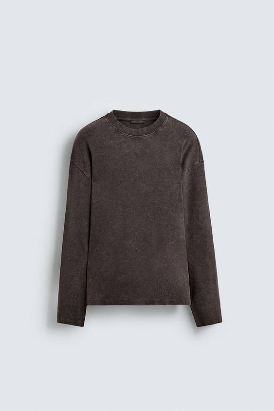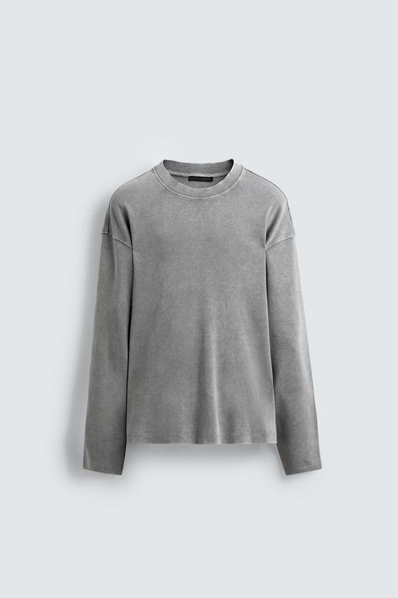 ザラ リラックスフィットユーズド加工Tシャツ(グレー・ライトグレー)