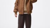 コーデ一例:アウターはユニクロ+JのハイブリットダウンオーバーサイズMA-1ブラック。パンツはGUのヘビーウェイトスウェットワイドストレートパンツ03グレー。足元はコンバースのオールスターブラック。