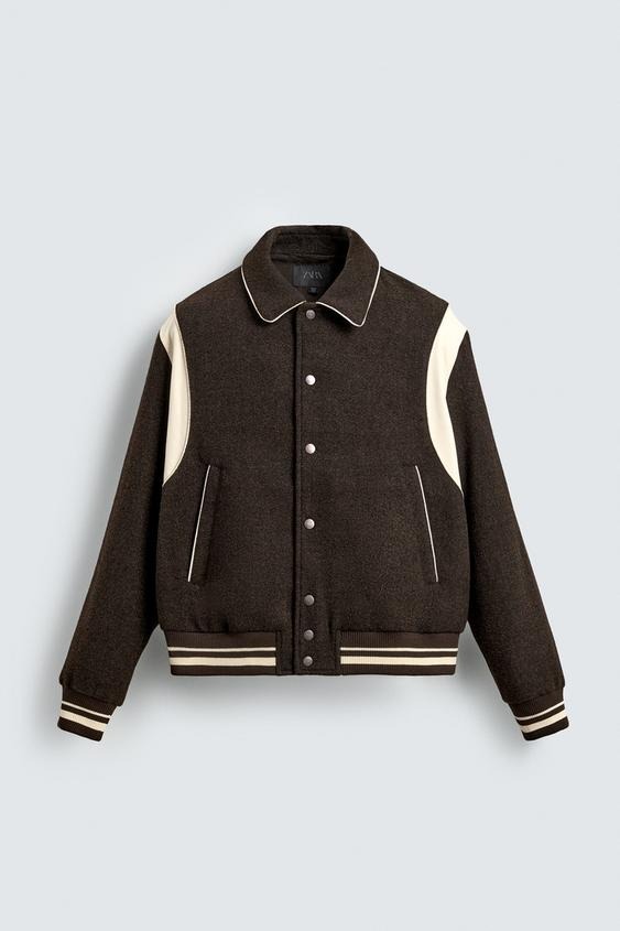 ザラ コントラストボンバージャケット(ブラウン)